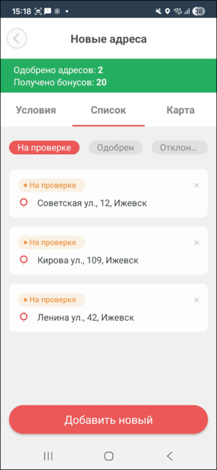 Карточка нового адреса: принятие и отклонение адресов