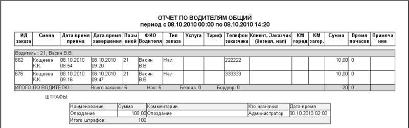 - Детали: Отчет по водителям общий.