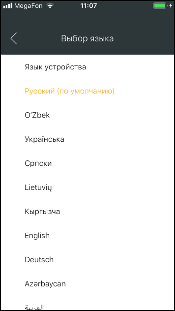Файл:Выбор языка в TaxoPhone (iOS).png