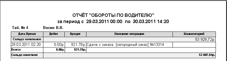 - Детали: Отчет «Обороты по водителю».