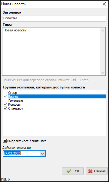Push-уведомления для групп экипажей