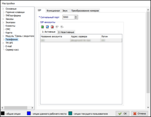 Телефония (Oktell и Софтфон) настраивается в окне параметров Такси-Мастер в отдельной ветке Телефония.