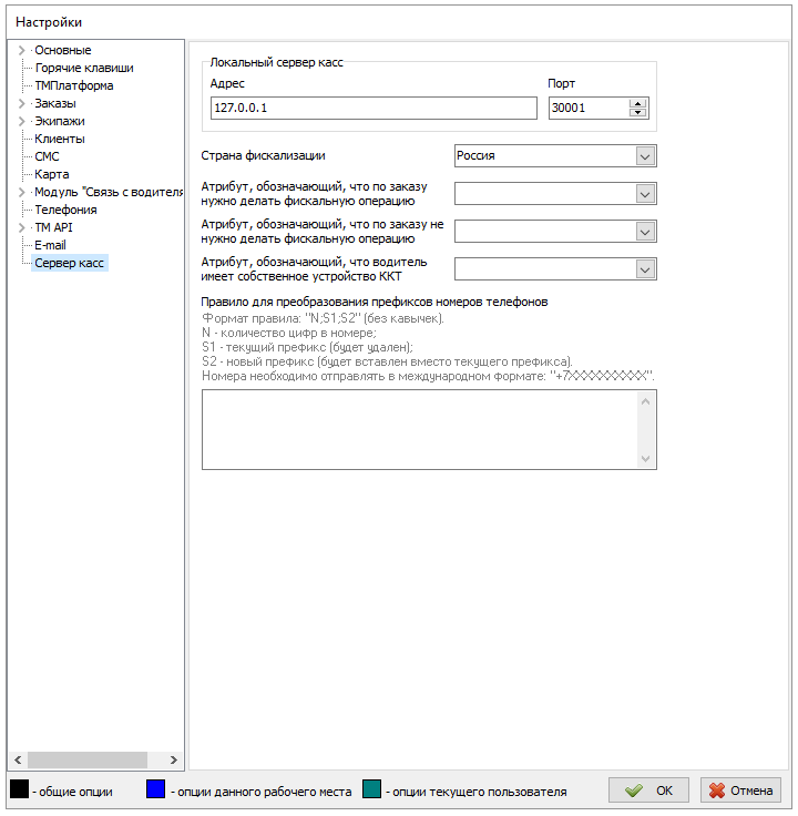 Настройки сервера касс в ТМ